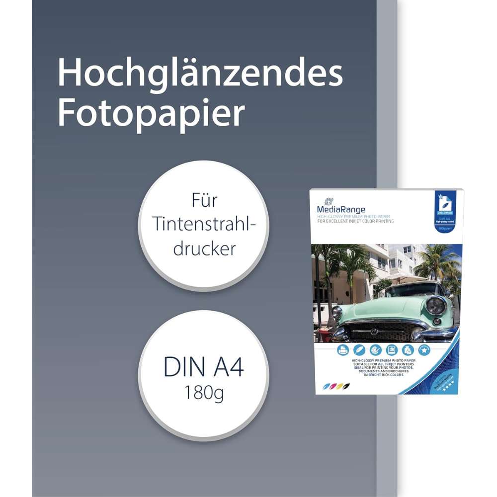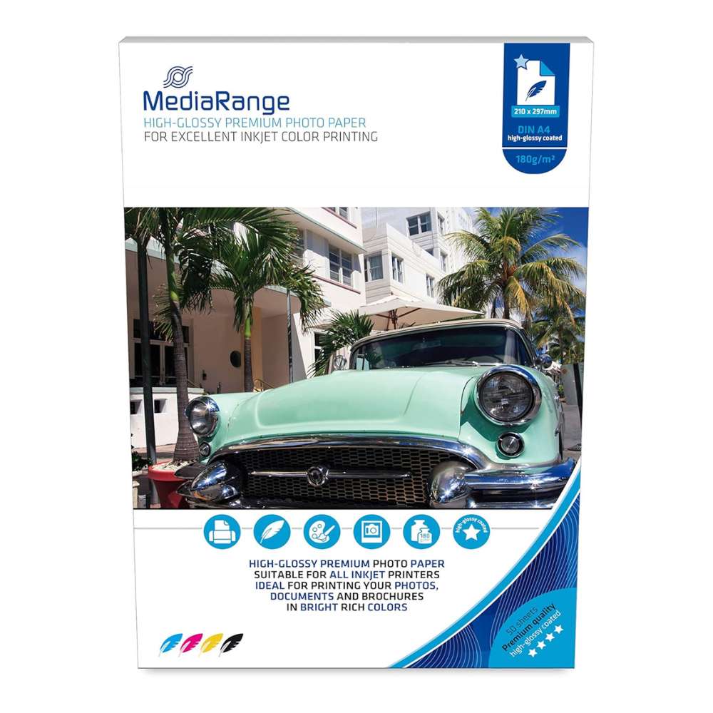 MediaRange Fotopapier – A4, hochglänzend, 180 g/m², 50 Blatt