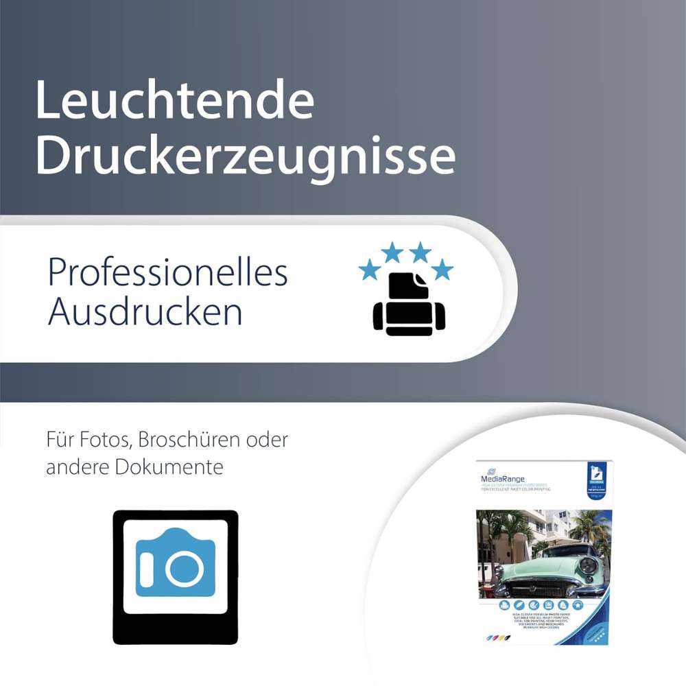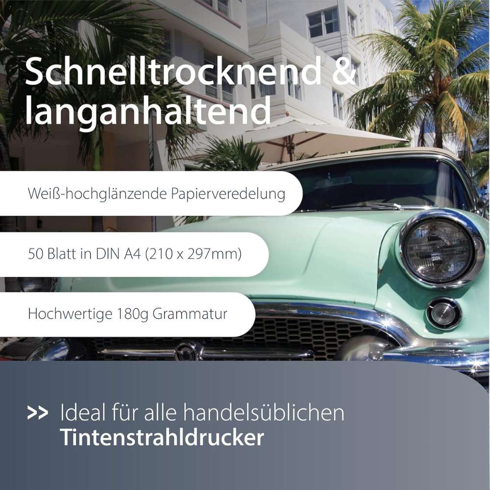 Hochwertiges hochglänzendes Fotopapier für gestochen scharfe und leuchtende Bilder in Laborqualität. Einseitig bedruckbar, schnell trocknend und langlebige Farbkonservierung. Ideal für professionelle Ausdrucke mit allen Inkjetdruckern.